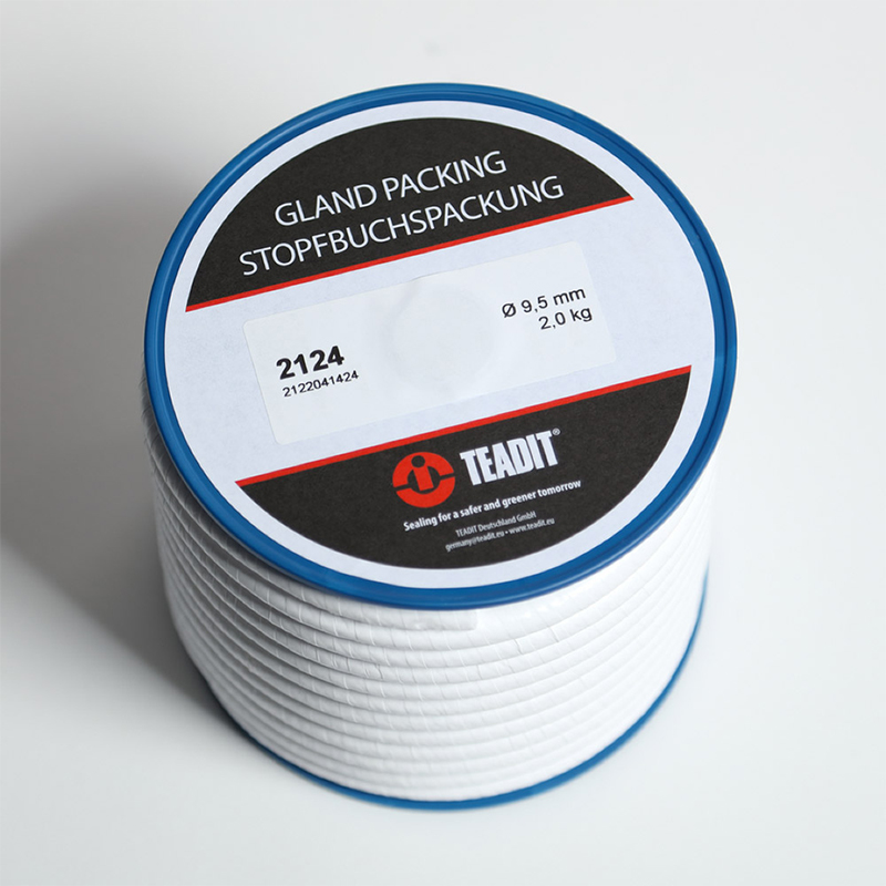 TEADIT style 2124由100%純PTFE帶編織而成,為了進(jìn)一步提高氣密性,編織成的盤根被緊緊地包裹在另外一層PTFE中。