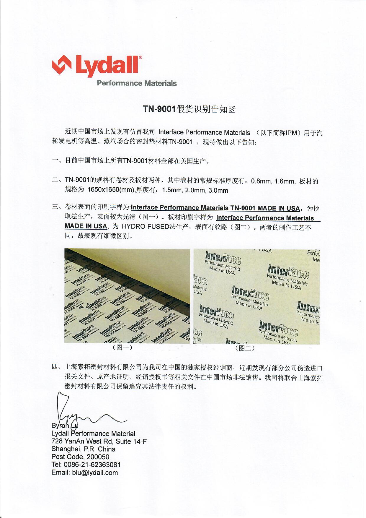 近期中國市場上發(fā)現有仿冒InterFace Performance Materials用于汽輪發(fā)電機等高溫、蒸汽場合的密封材料TN-9001,現特作出以下告知: