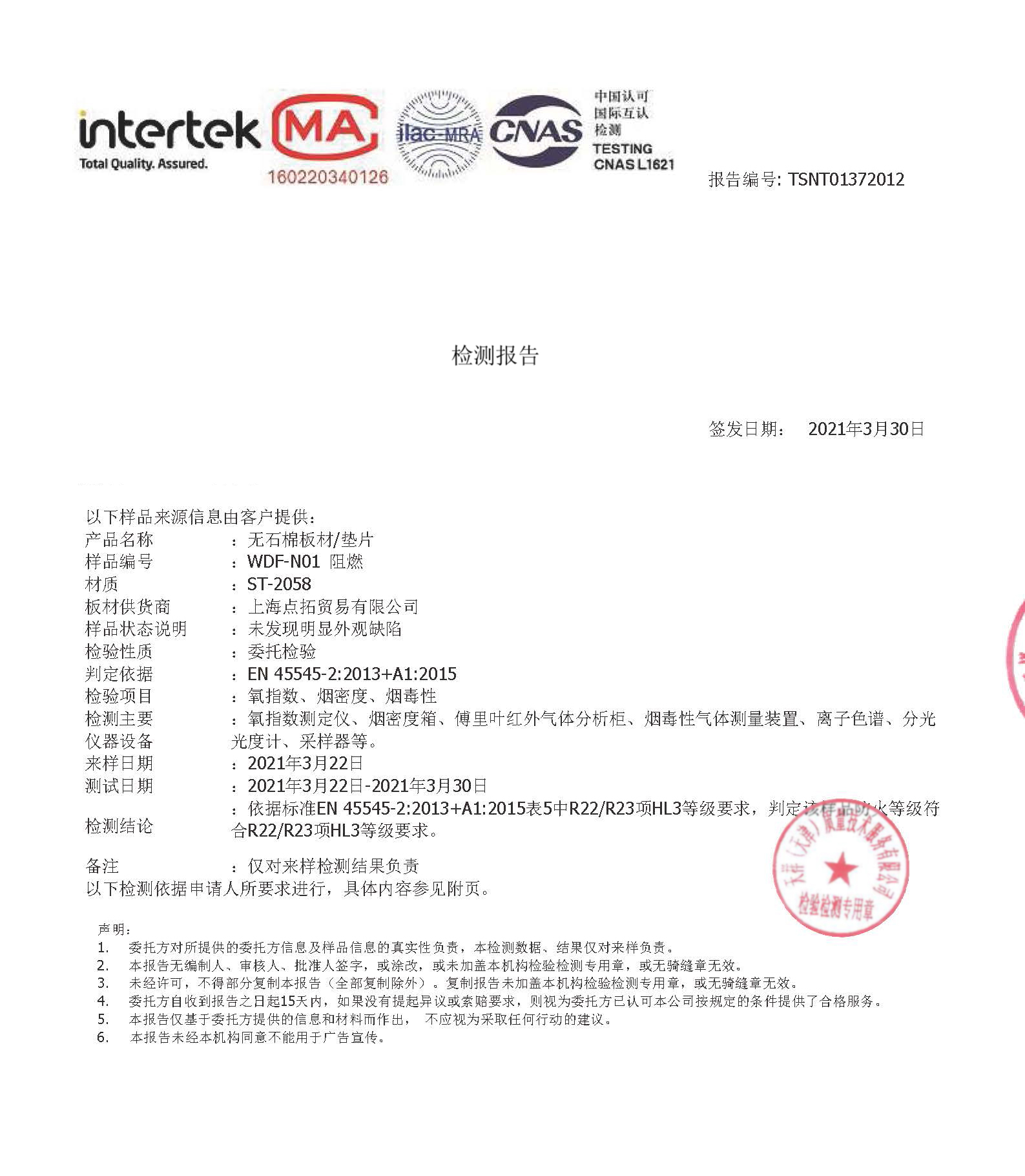 我司ST-2058無石棉板符合EN45545中HL3等級要求