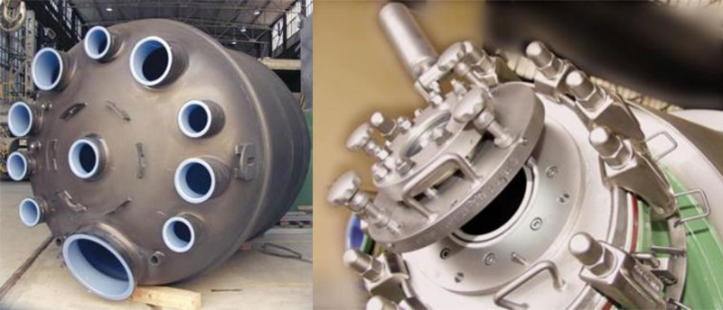 搪玻璃反應(yīng)釜法蘭表面不平整,需要特殊類型的包覆墊。如果選擇錯誤的密封墊片或扭矩維護不當(dāng)都可能導(dǎo)致搪玻璃設(shè)備的損壞。而反應(yīng)釜噴嘴或人孔處強腐蝕性介質(zhì)的微小泄漏也會滲入法蘭表面,破壞法蘭邊緣/末端的玻璃,進而破壞容器本身,因此該處密封顯得尤為重要。