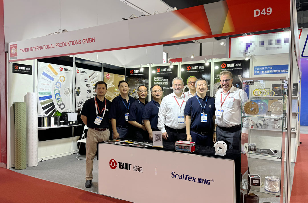 本次展會(huì)展出了帶有TEADIT® TAGTM 標(biāo)記的低逸散性可追溯盤(pán)根2848,以及API 622 測(cè)試平均泄漏率僅為2ppm、ISO 15848-1 密封級(jí)別A的2236盤(pán)根;多款膨體四氟和改性四氟材料,例如:24SH膨體四氟,TF1570\TF1580\TF1590改性四氟,以及各種符合BAM氧氣測(cè)試、PFAS Free,適用于超低溫工況、低泄漏等要求的密封產(chǎn)品。