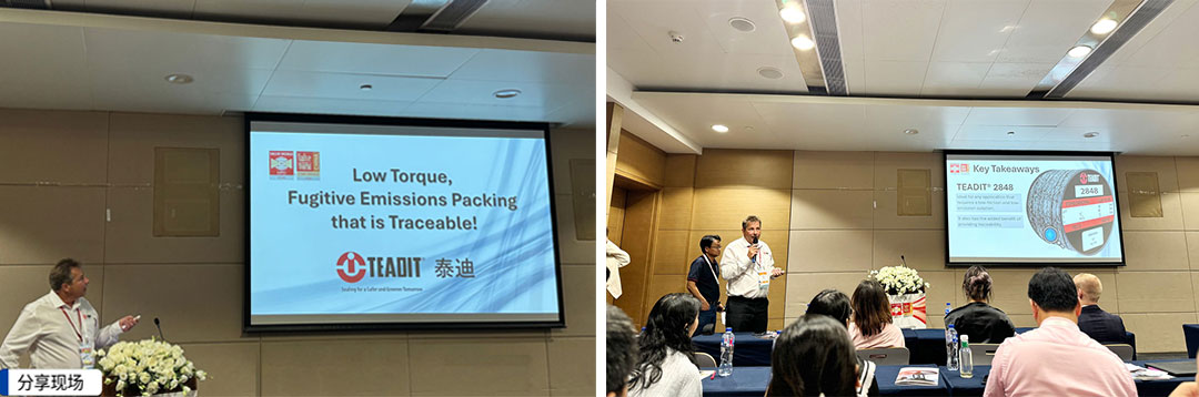 本次展會(huì)SealTex索拓與TEADIT泰迪聯(lián)合參展,展會(huì)期間,TEADIT泰迪 Oliver Zach 奧利維先生在研討會(huì)上進(jìn)行了《低扭矩、可追溯的防逸散泄漏填料(Low Torque,Fugitive Emissions Packing that is Traceable!)》主題分享。